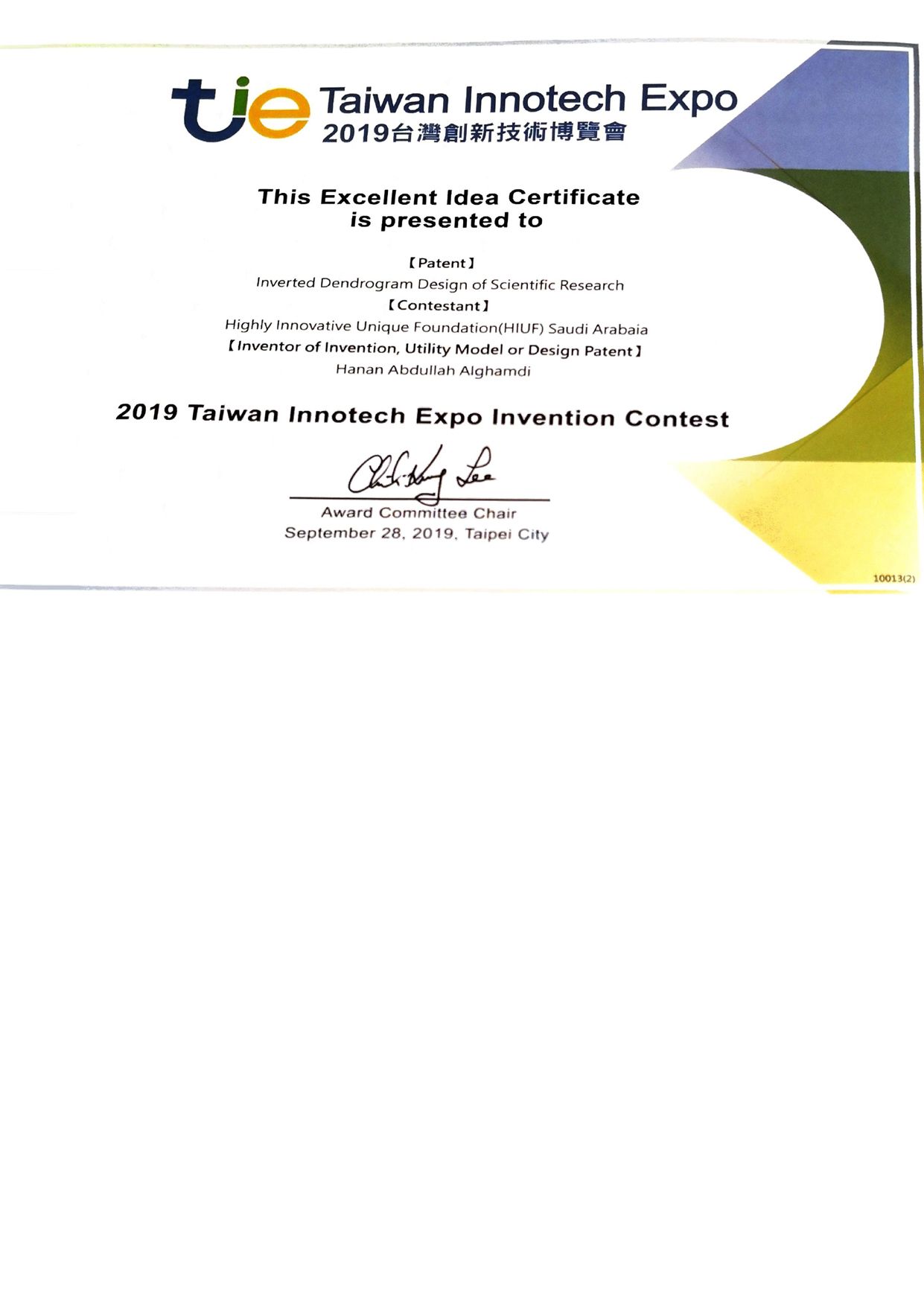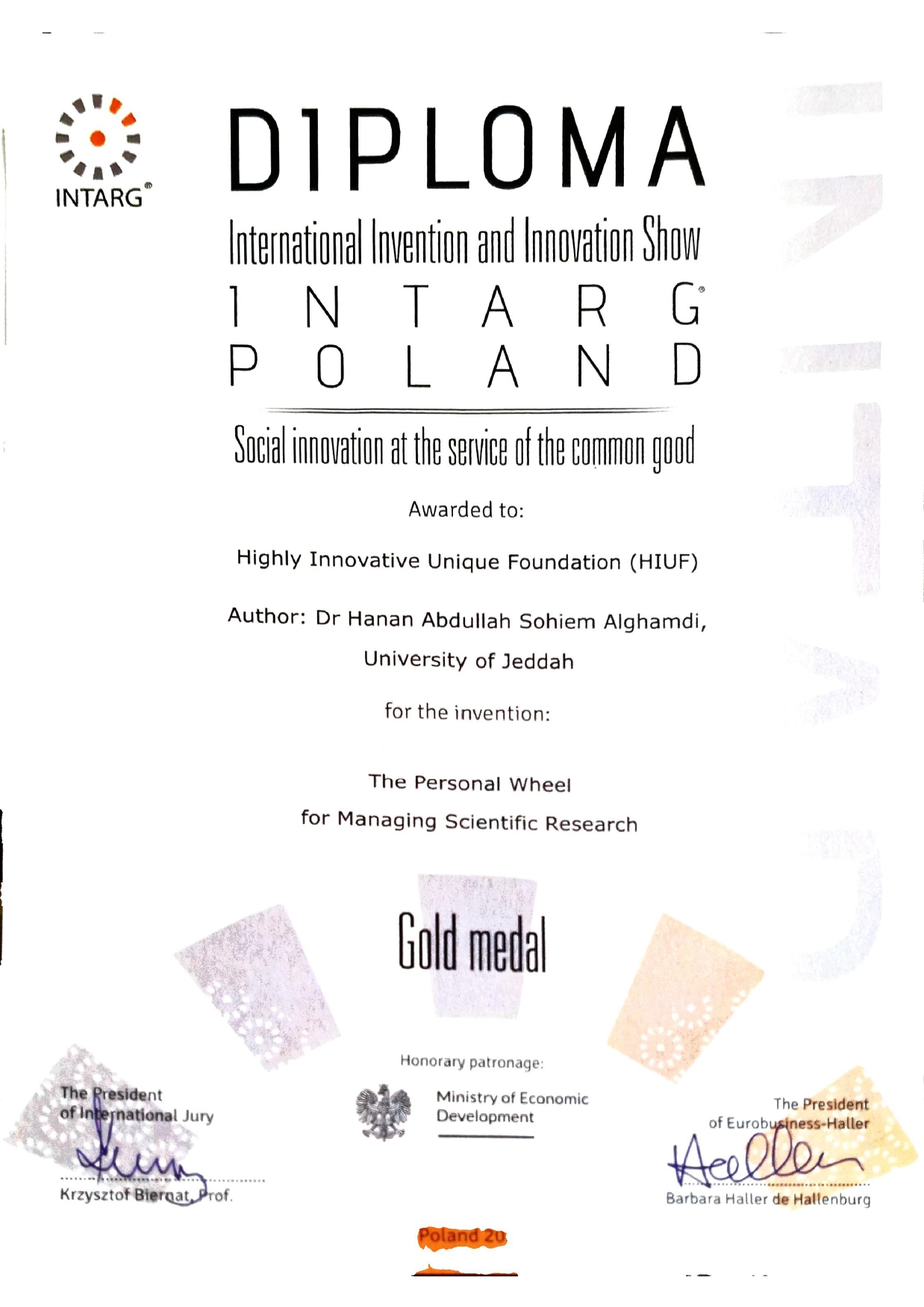 وسام الفكرة الممتازة في معرض التعادل2019 الميدالية الذهبية في intarg2020...
